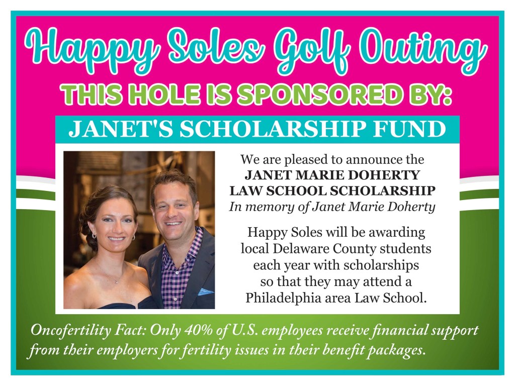 We are pleased to announce the Janet Bollinger Doherty Law School Scholarship Fund. Each year, Happy Soles will award at least 1 $5,000 scholarship to a Delaware County, PA young adult electing to move on to a local law school. The candidate must share the following qualities that make up Janet’s legacy: scholarship, athleticism, a love of the arts/music and philanthropy.